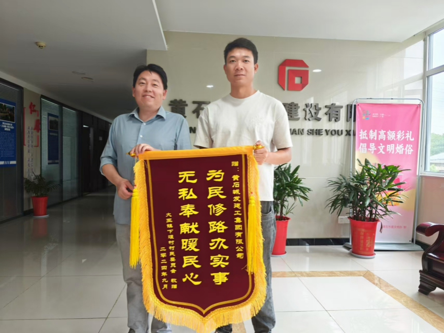 9月12日上午,黃石市開發(fā)區(qū)·鐵山區(qū)大王鎮(zhèn)下堰村委代表將一面寫有“為民修路辦實事 無私奉獻暖民心”的錦旗送到城發(fā)建工集團,對城發(fā)建工集團在精準服務居民所需、積極解決居民急難愁盼的工作表示衷心感謝。