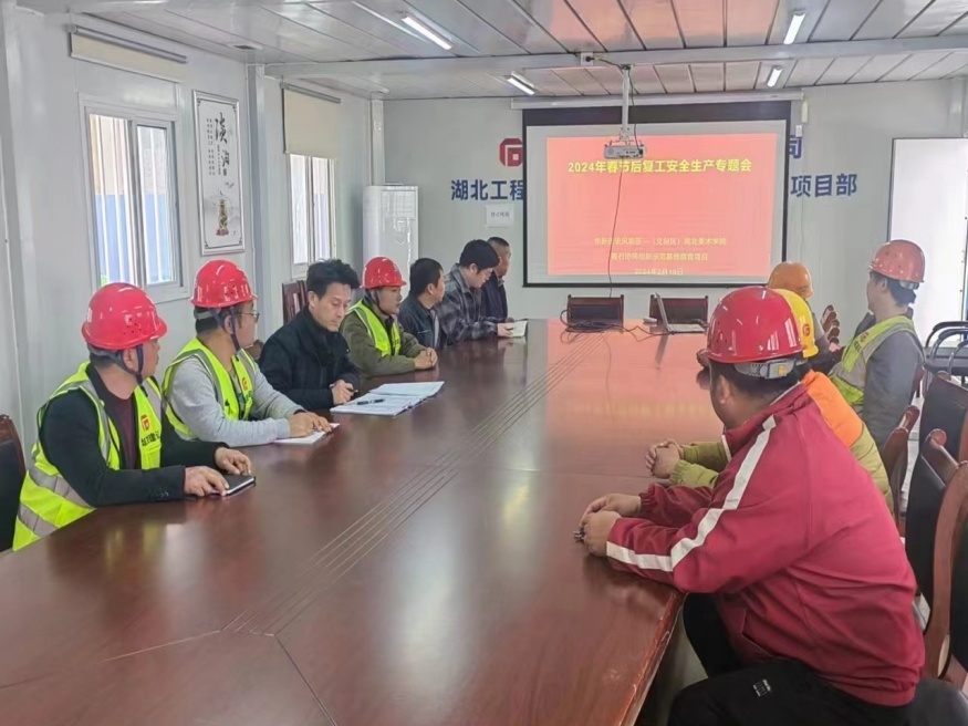 圖為華新美院項(xiàng)目開展2024年節(jié)后復(fù)工復(fù)產(chǎn)安全生產(chǎn)專題會(huì)